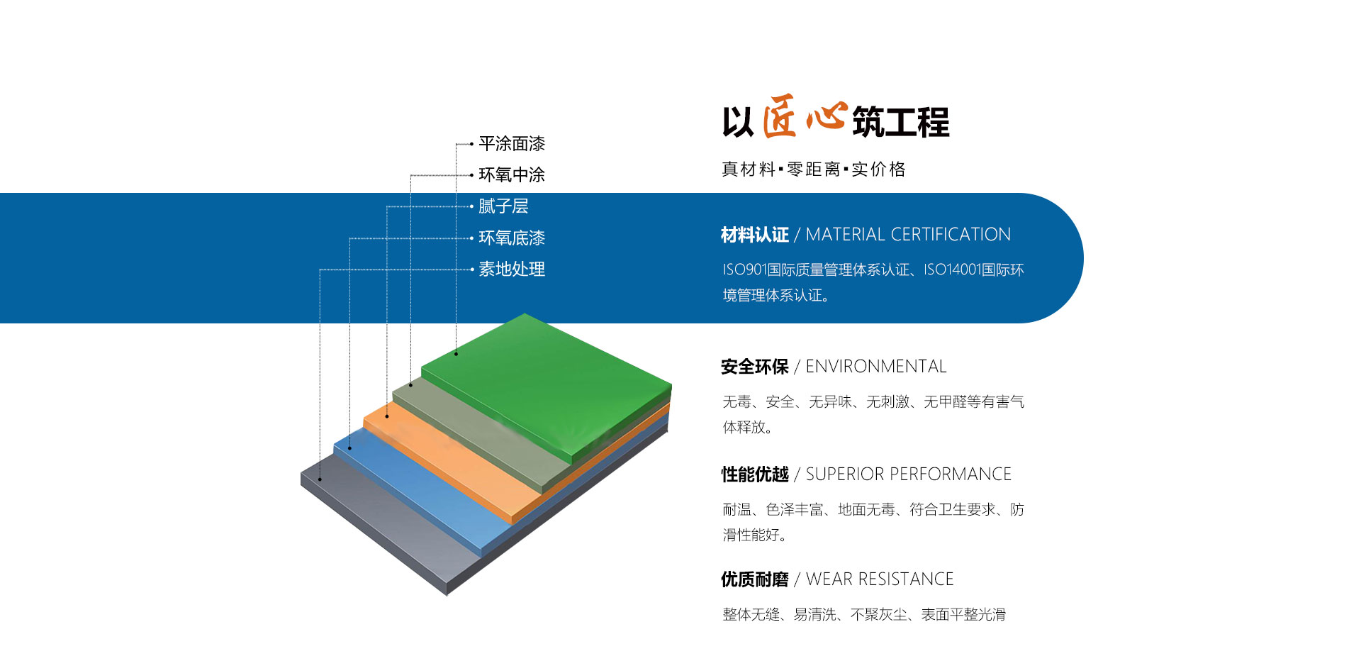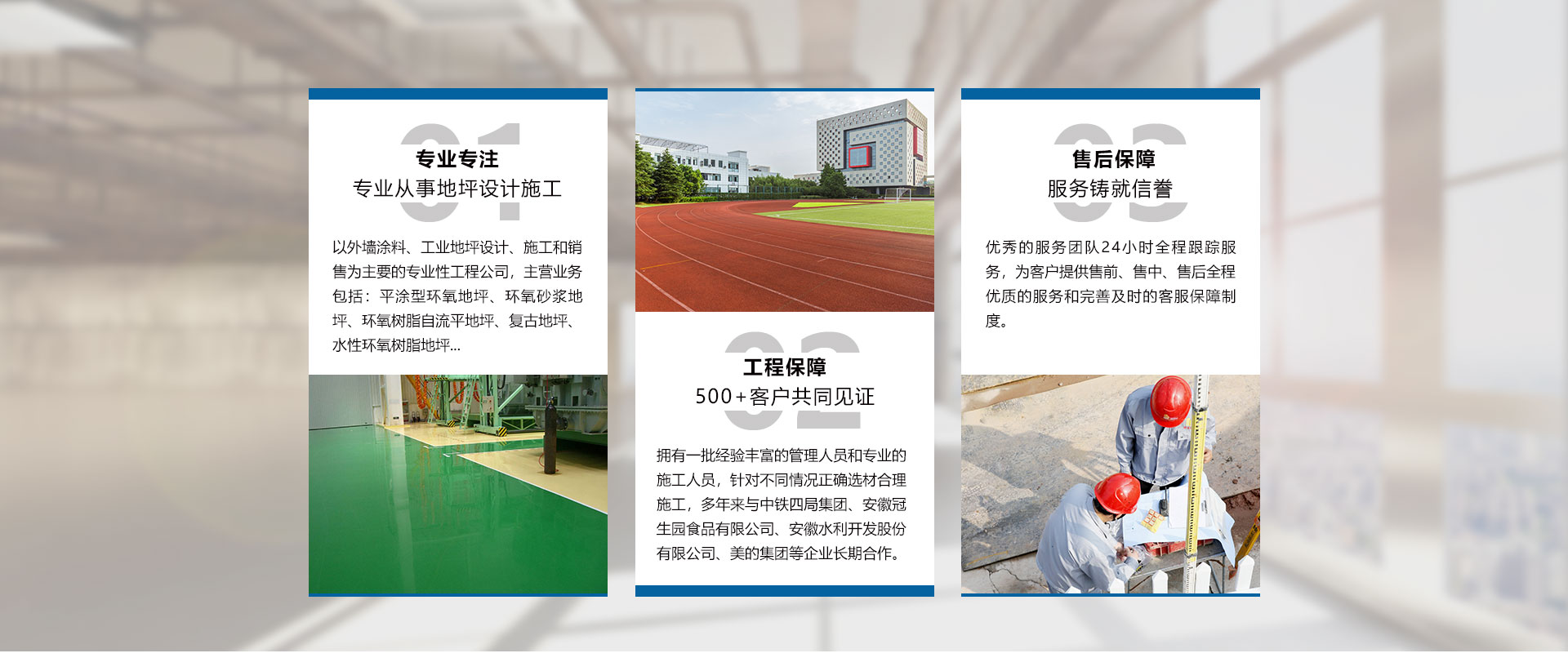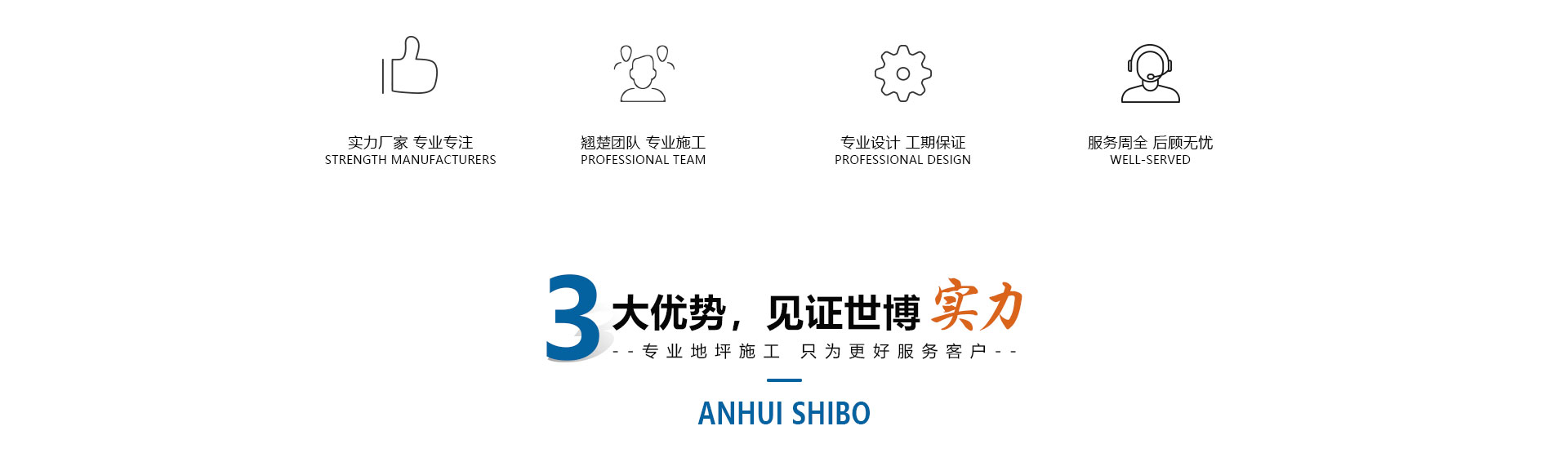 安徽世博裝飾工程有限公司成立于2009年,是一家以外墻涂料、工業(yè)地坪設計、施工和銷售為主要的專業(yè)性工程公司、是工業(yè)地坪施工的專業(yè)企業(yè)。公司設立了售后服務中心,用戶遍布全國大中小城市,一大批具有標志性的長期合作伙伴。“世博公司”環(huán)氧地坪工程,受到了越來越多的不同行業(yè)用戶的好評及青睞。公司擁有一批經(jīng)驗豐富的管理人員和專業(yè)的施工人員,以保障產(chǎn)品的成功應用,用較小的代價獲得理想的效果,尤其在地坪涂裝方面優(yōu)勢突出。而且以好的品質(zhì)管理模式,向客戶提供“獨具魅力”、“性能優(yōu)異”、“質(zhì)量穩(wěn)定”的產(chǎn)品。公司主要產(chǎn)品包括:平涂型環(huán)氧地坪、環(huán)氧砂漿地坪、環(huán)氧樹脂自流平地坪、滾涂型防靜電地坪、自流平防靜電地坪、復古地坪、水性環(huán)氧樹脂地坪、彩色透水混凝土地坪、壓花壓模藝術地坪、金剛砂耐磨硬化地坪、混凝土密封固化劑地坪、乙烯基酯重防腐地坪、GEP 標準型地坪、彈性PU運動場地坪、塑膠跑道地坪,PVC橡膠地板、停車場地坪、無震...